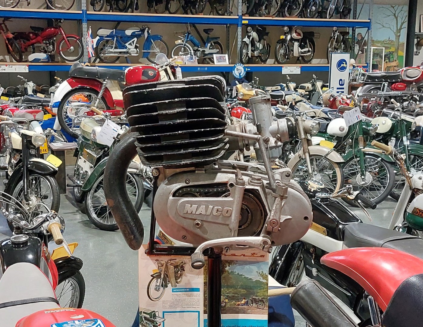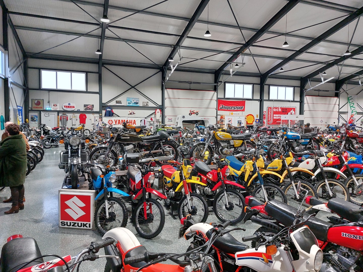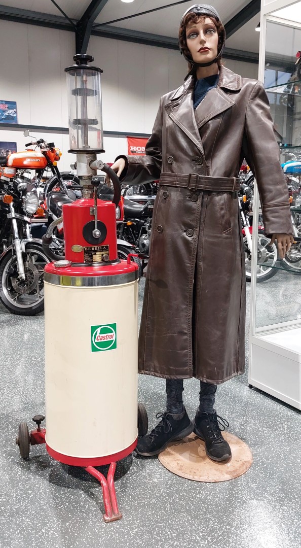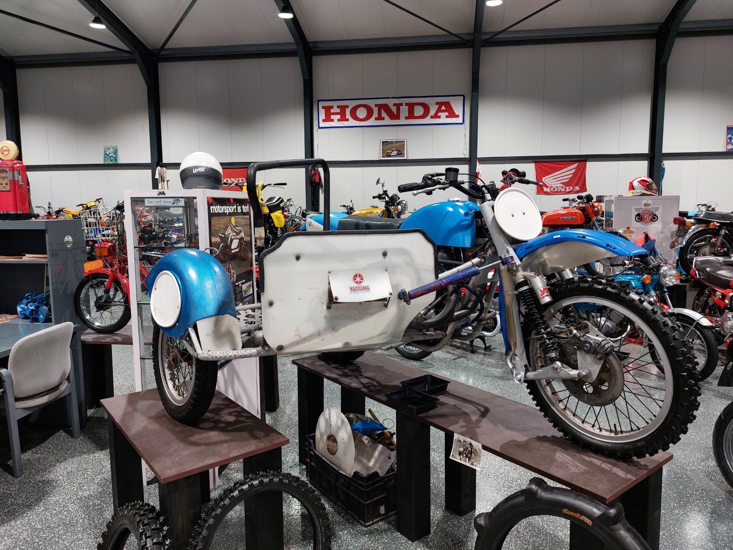 Ook stonden er zijspanmachines bij. Verder is het museum aangekleed met allerlei aanverwante zaken zoals legio foto’s van motoren brommers al dan niet met foto’s van renners en crossers er bij op. Wat er ook staan zijn de beroemde tweetakt benzine pompen met een tank en een maatglas er boven op. Veelal zijn die van het merk Bereila (BErghuis, REIneking en LAanstra.)