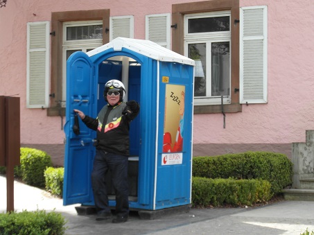 Zon, zon, zon: YES! en daar gingen we weer. Om 9:30 uur, nu met alleen de 15 man, Trees kon niet meer mee ivm rugklachten. Dit keer met voorrijder en een super spoorzoeker naar kleine wegen Thomas Beumer richting het noorden. Het begon net als de avond er voor wat we met ons tweeën hadden gereden. Dahnen, Kalbom, Heinerscheid en Weiswamdach. Daar moest een persoon nodig stoppen en met toeval stond daar een Dixi! Top(pie).