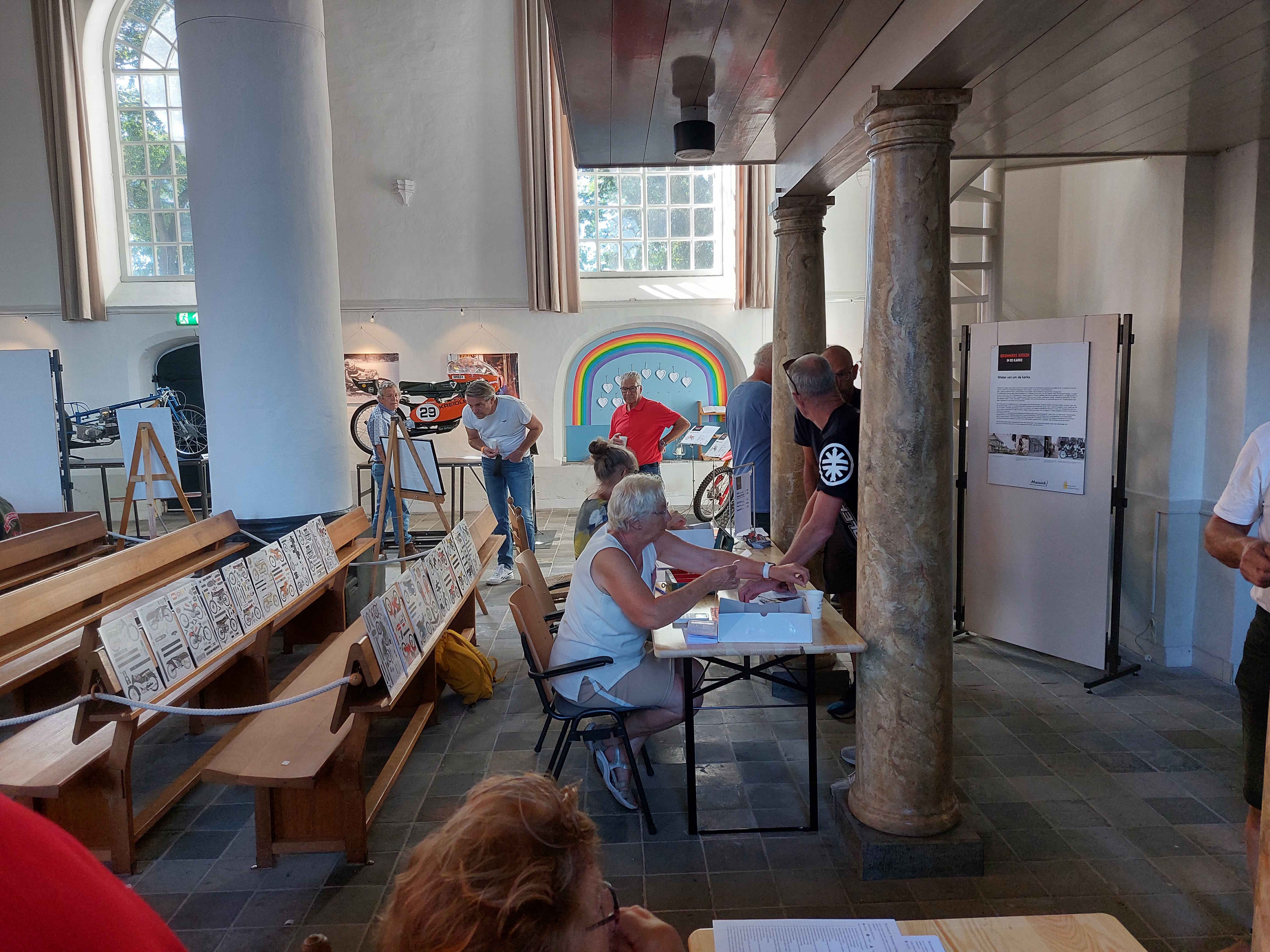 In totaal hebben zo’n 750 mensen de tentoonstelling bezocht waaronder ongeveer 200 tourrijders. Op zondagmiddag hebben ook nog Herr und Frau Kreidler de tentoonstelling bezocht. Het waren weliswaar wel Herr und Frau Kreidler maar waren zo ver als na te gaan was in de verste verten geen familie van Anton. Maar toch leuk, ze er waren vanaf een nabijgelegen camping even naar de Remigiuskerk gekomen. Het bestuur dankt alle leden die aan dit evenement hebben meegewerkt,