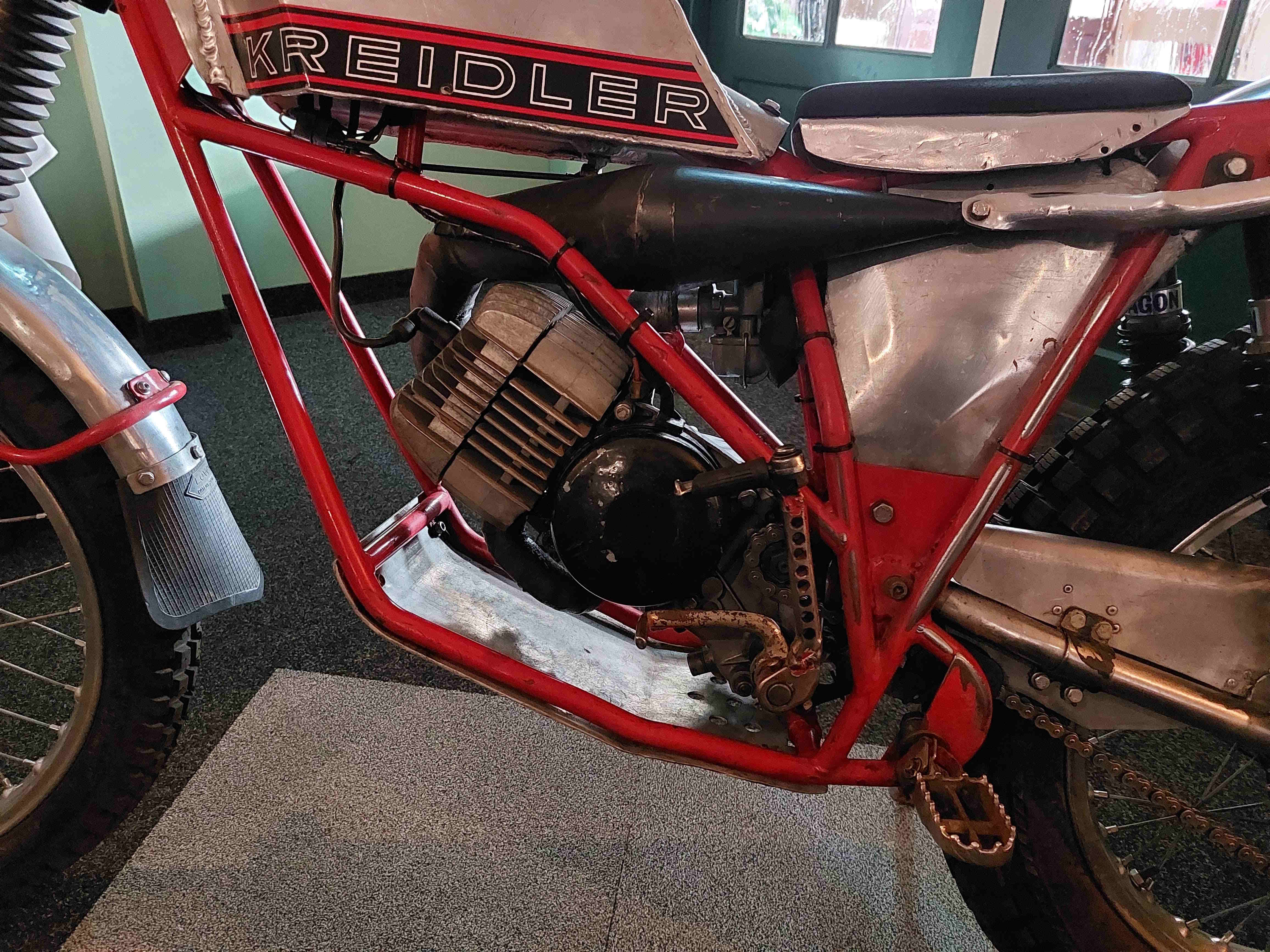 Via een van onze leden John Brendel werd er gevraagd of er een trial Kreidler uitgestald mocht worden in de zaal. Deze was door meneer Gijs van Woerkom zelf gebouwd en was een prachtige aanwinst. (in een volgende editie meer over deze trial