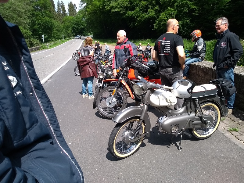 De opkomst met ca 26 deelnemers op een Kreidler (of iets wat er op lijkt!) en ook nog eens zo'n 16 dames die ook de smaak te pakken hebben van deze weekendjes, was formidabel. Het Hotel Brauer heeft zich van haar beste kant laten zien met prima slaapkamers, goed eten en drinken, fijne bediening en een uitstekende stalling voor onze kostbare tweewielers. het parkeren van de auto's met aanhanger was wel vrij krap (wij waren hiervan op de hoogte), maar met wat passen en meten is ook dit goed gelukt. Voor de 2e avond was er een meer dan uitstekende barbecue bij de "Alte Weinstube" ietsje verderop, achter het hotel. Al met al een goed onderkomen voor deze 4 dagen en zo goed, dat het voor het komend jaar ook reeds is geboekt.