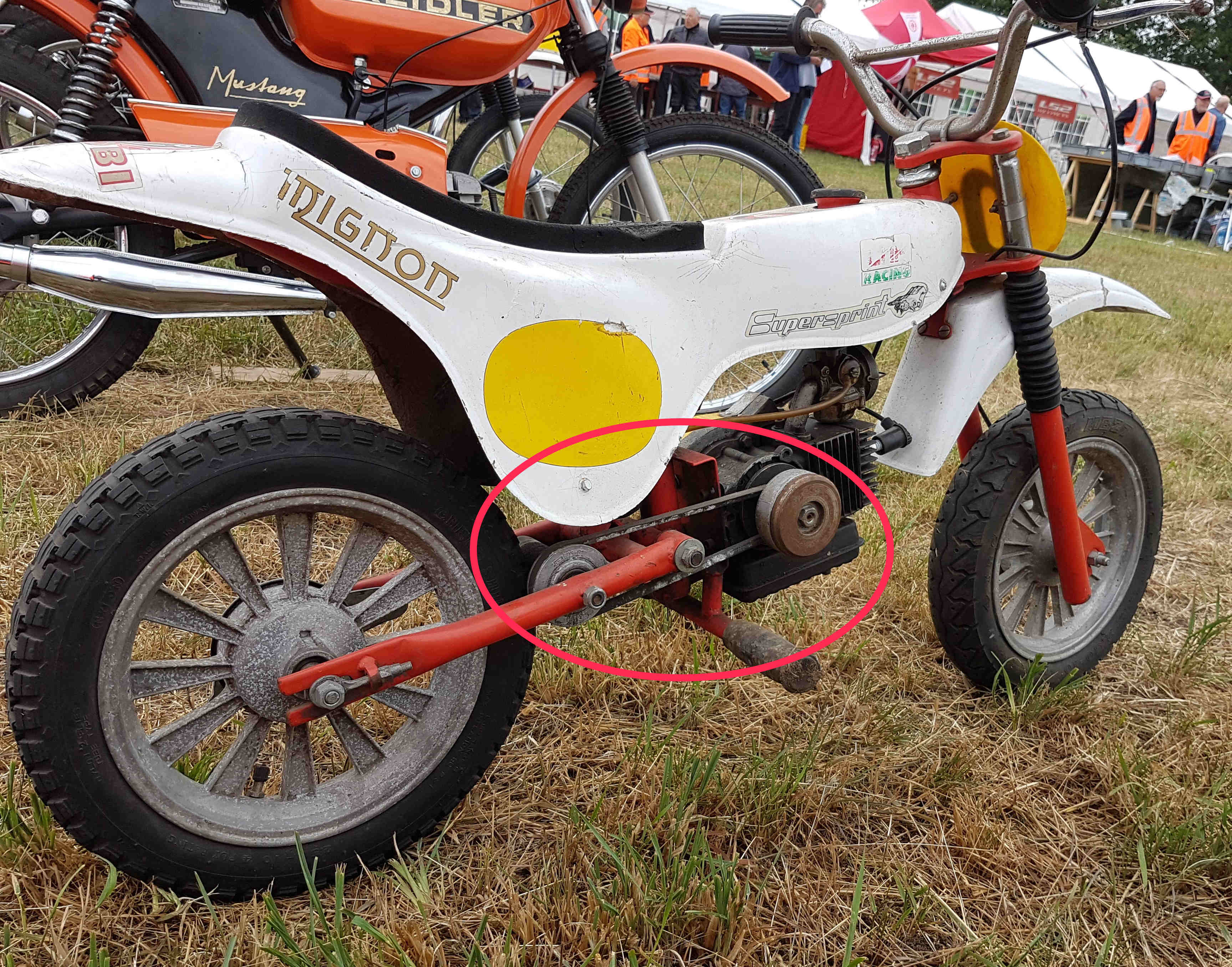 Nog een keer de Mini crosser. Let op de rol aandrijving (in de rode cirkel)