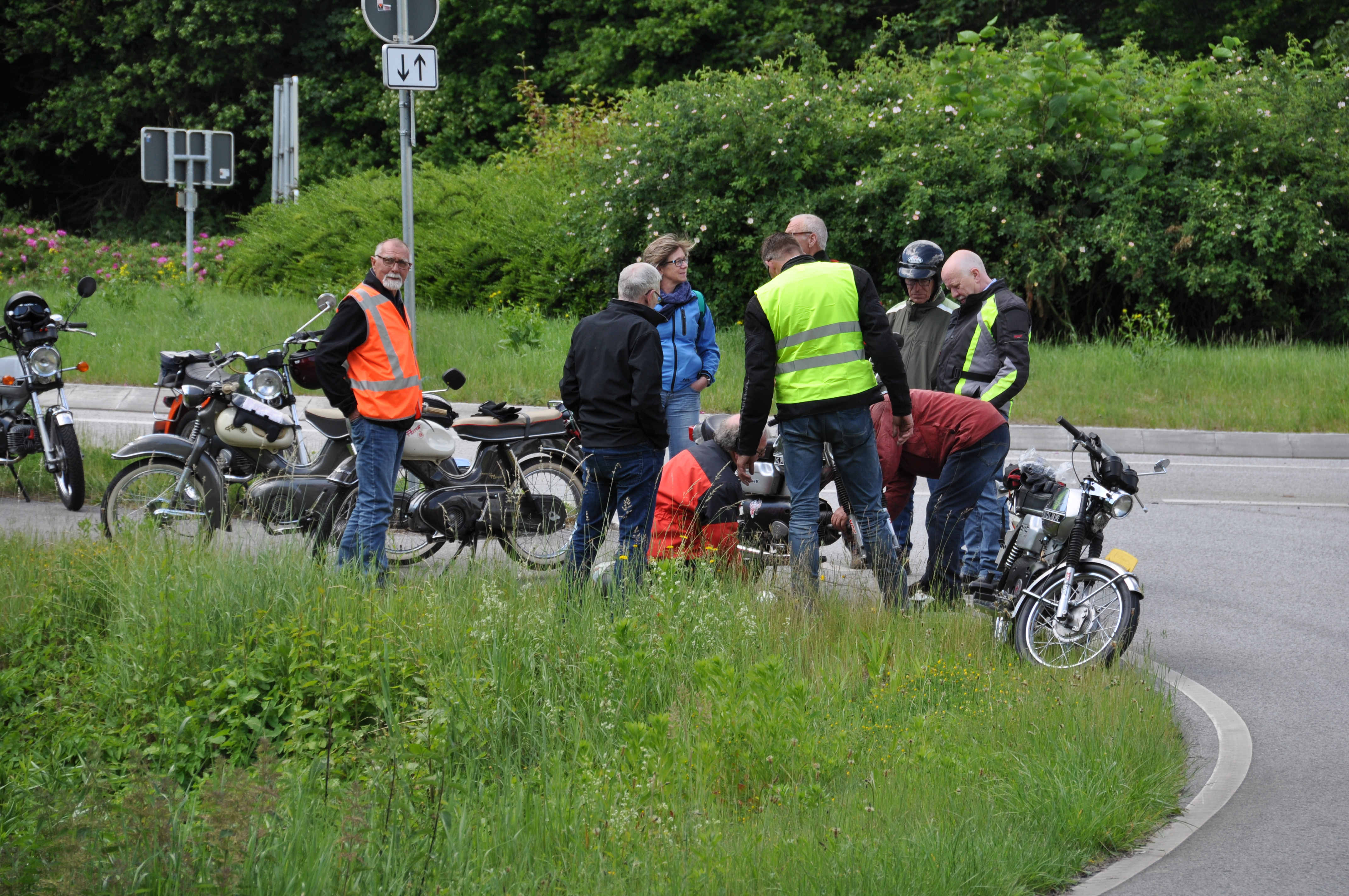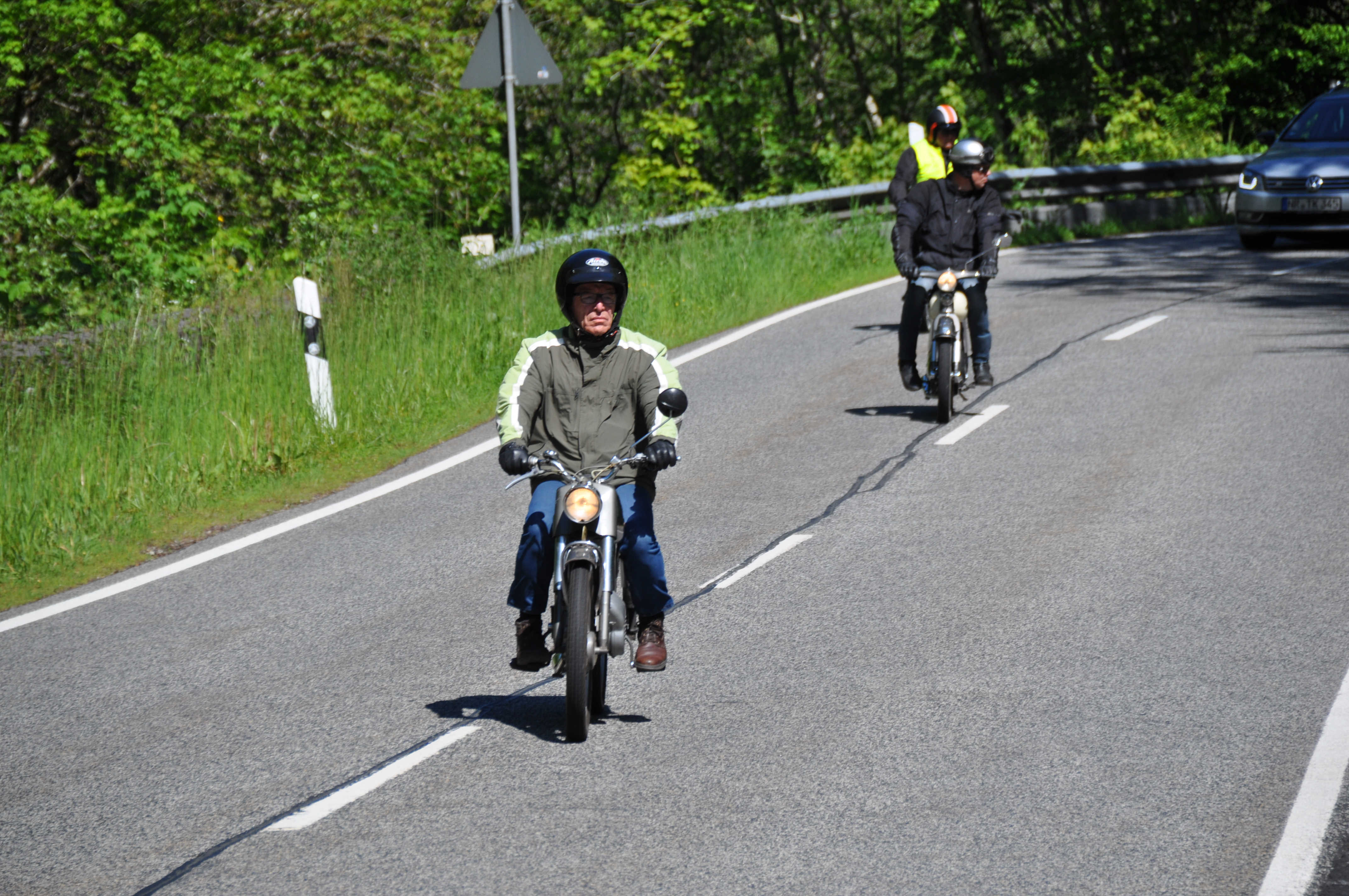 Om 13.30 uur stonden we met onze brommers startklaar en vertrokken we voor onze eerste rit de heuvels in.