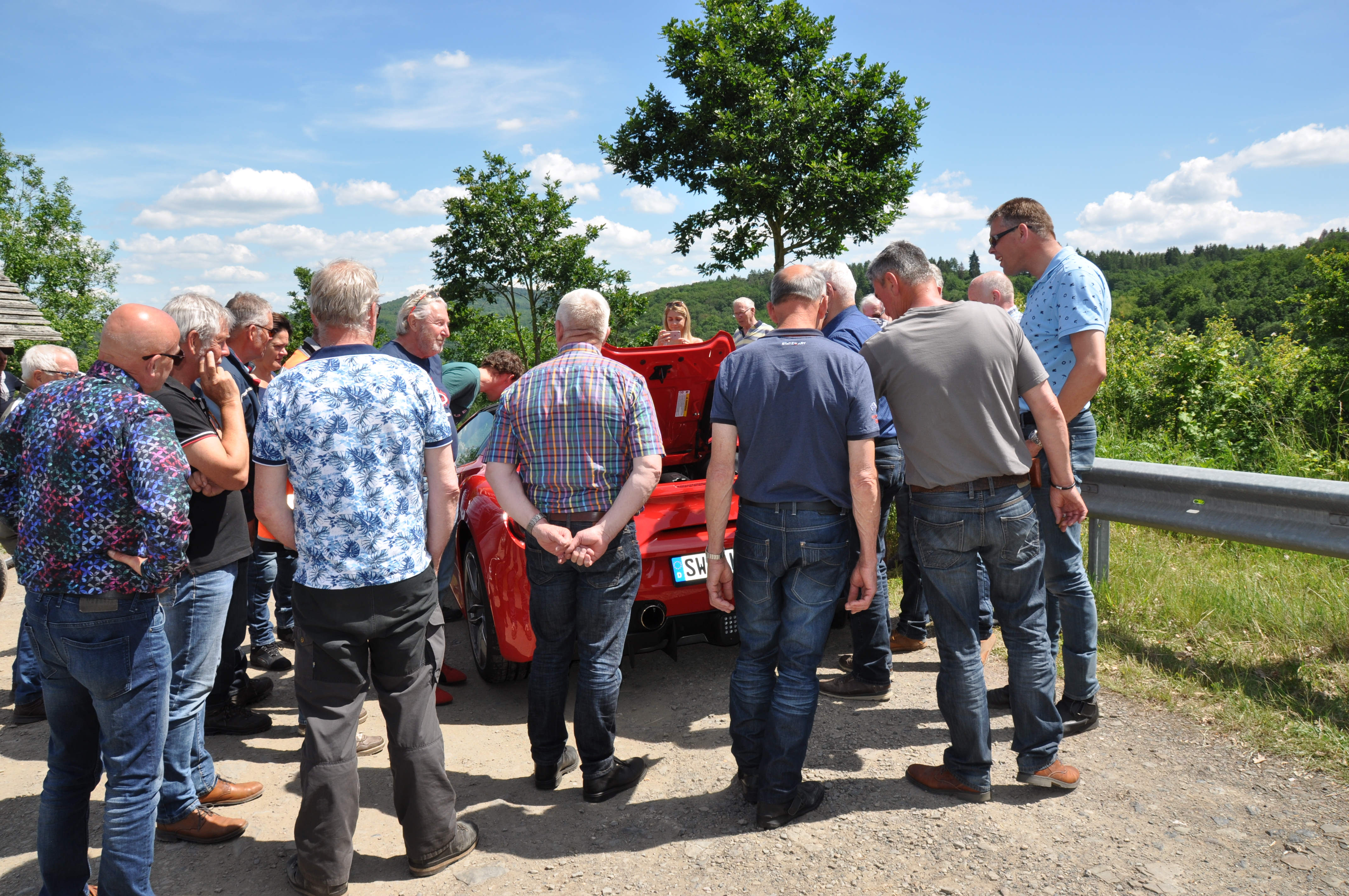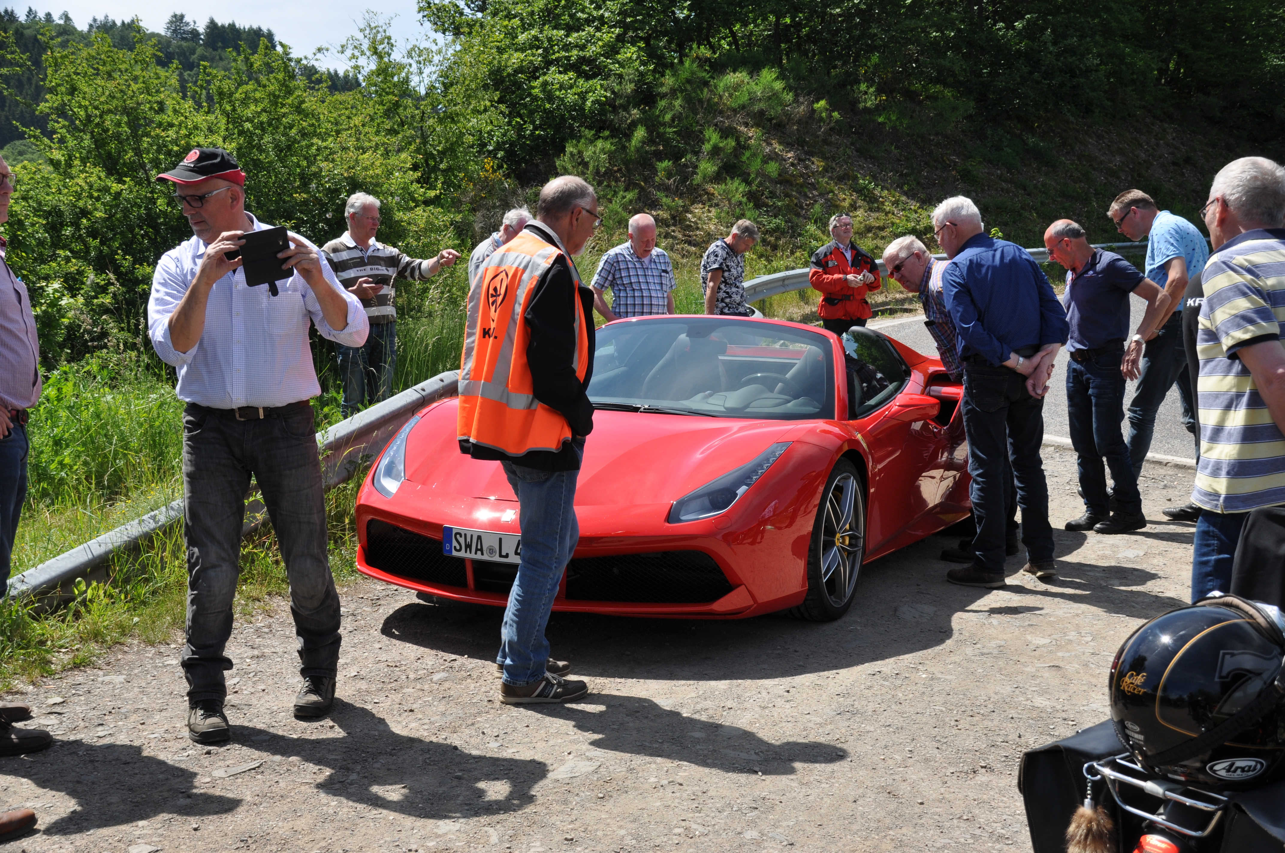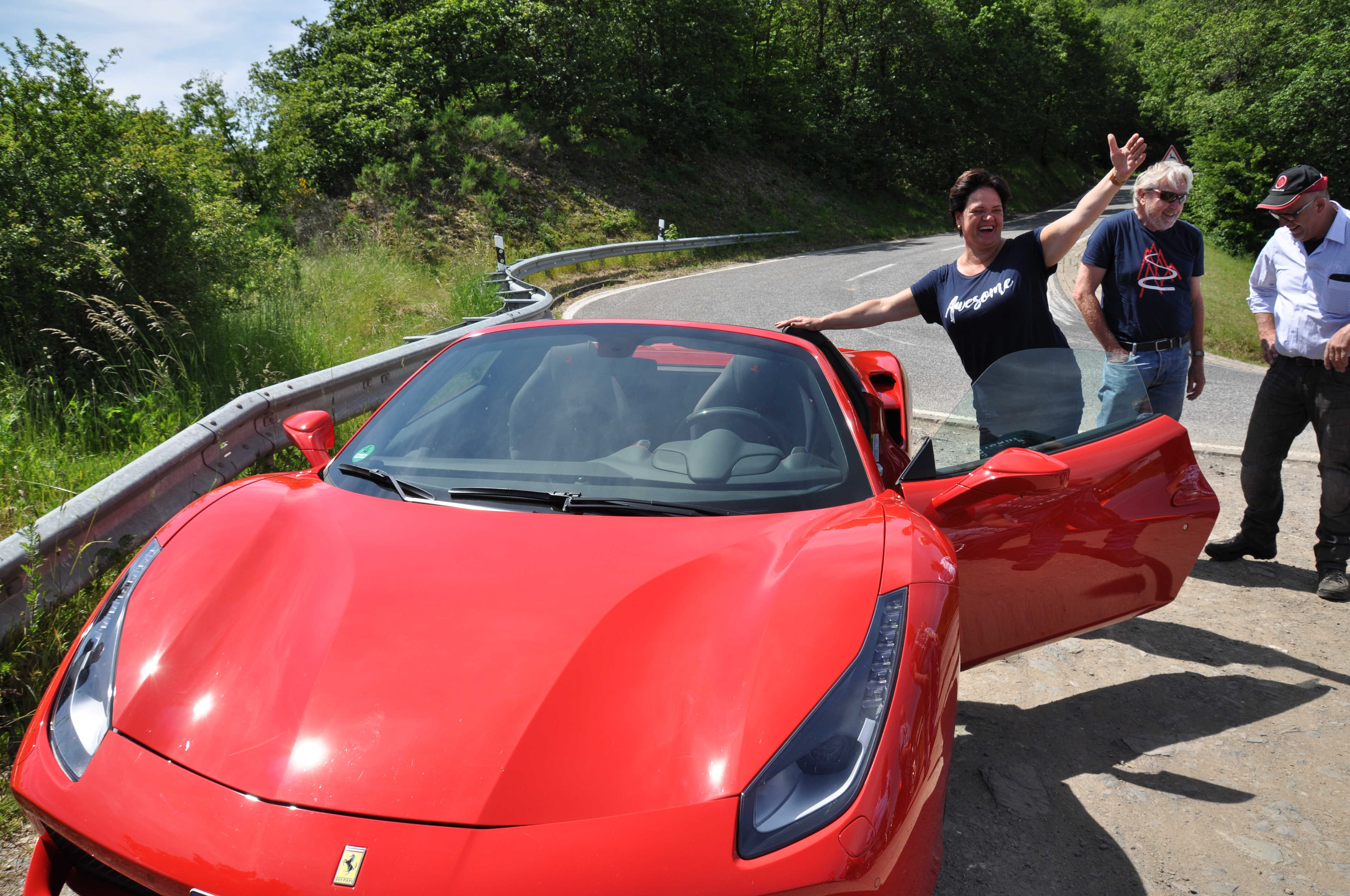 heerlijk verder gereden en gestopt bij een prachtig uitkijkpunt. Daar kwam ook iemand met een zes weken oude Ferrari met maar liefst een acht cilinder motor. René zei gekscherend: