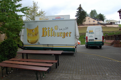 Om 15:00 kwamen wij aan bij het pension Hütterscheiderhof te Hütterscheid, waar een groepje KCON-ers die al eerder was gearriveerd, net zou vertrekken voor een eerste verkennende rit door de omgeving. In de morgen waren er ook al mensen van de KCON aangekomen, die op dat moment een bezoek brachten aan de brouwerij te Bitburg. Dit weekend was dan ook georganiseerd door het pension Hütterscheiderhof, met hulp van onze eigen Wim Top.