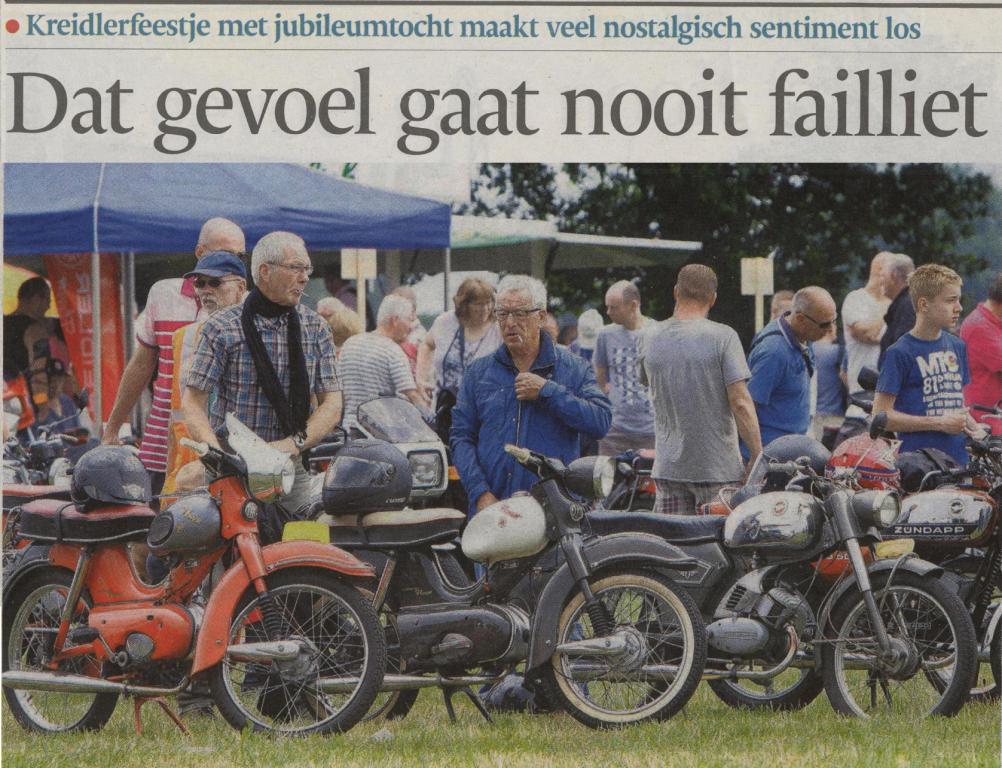 Het historisch overzicht kende zo'n 30 modellen Kreidlers, vanaf de J51 uit 1955, tot de Kreidler Mustang uit 1982. Al met al een prachtig overzicht van de meeste modellen die door "Kreidler-Metal und Drahtwerke GMBH" zijn geproduceerd. Vermeldenswaardig is de bezoeker uit Brabant die een nog oudere Kreidler bij zich had, het allereerste model uit 1950, de Kreidler K50. Deze bromfiets is later door iemand van onze club nog gekocht, waardoor wij dit fraaie model nog wel vaker tegen zullen komen.