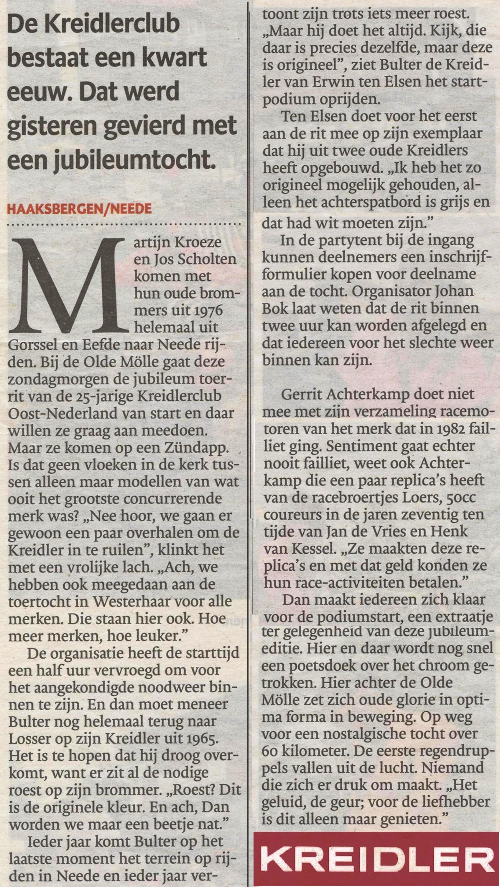 De Kreidlerclub Oost Nederland is opgericht in het jaar 1990 en bestaat nu dan ook 25 jaar.