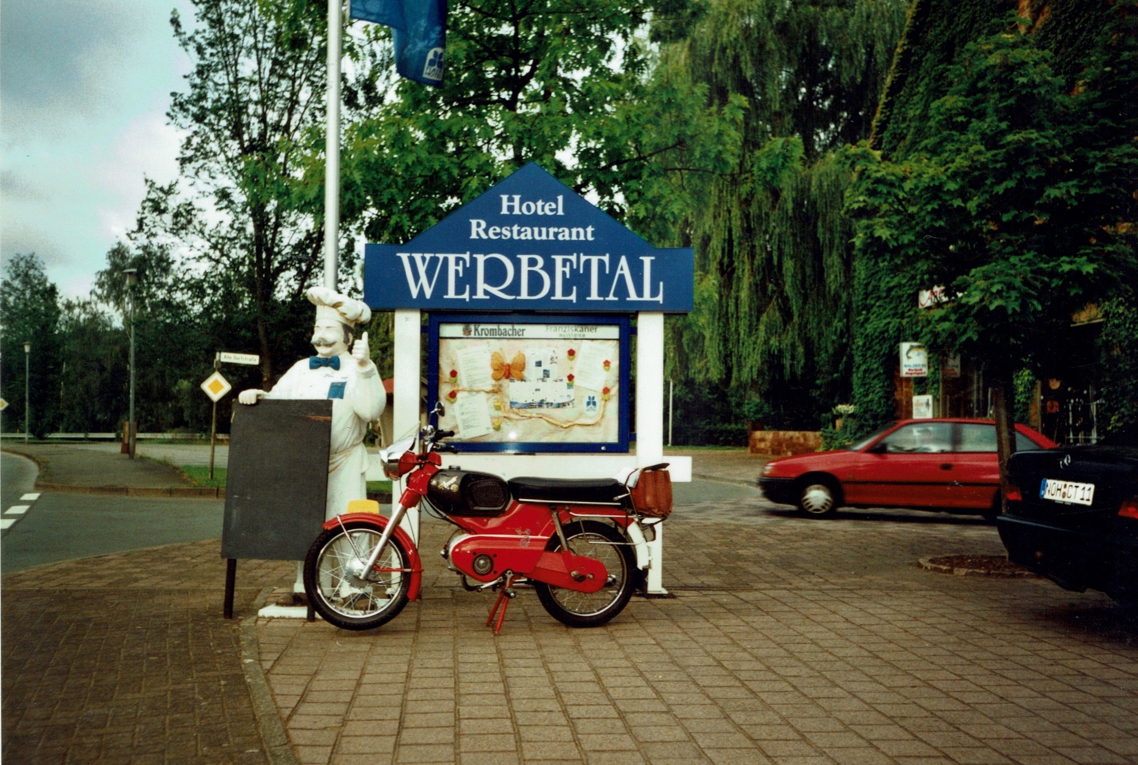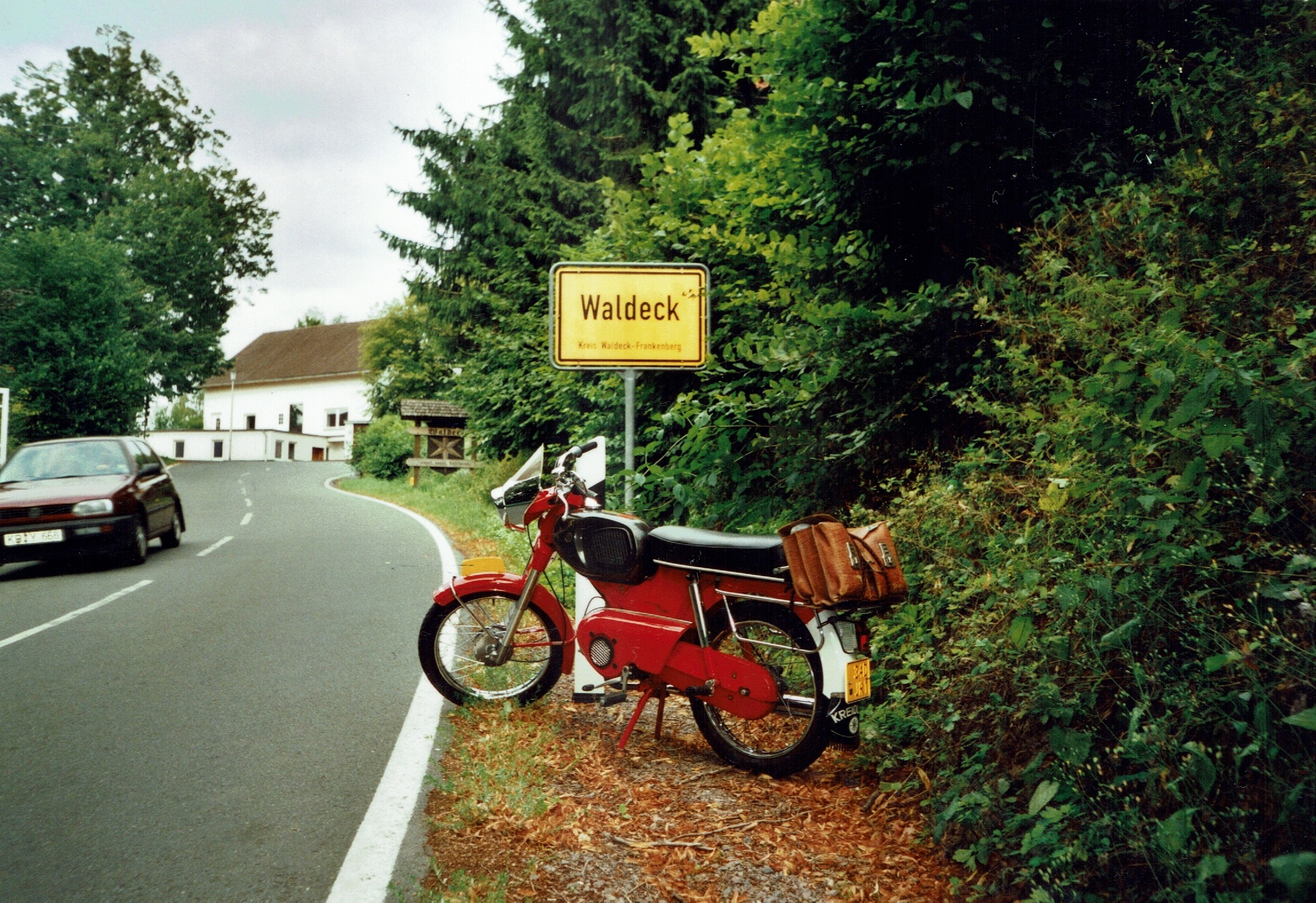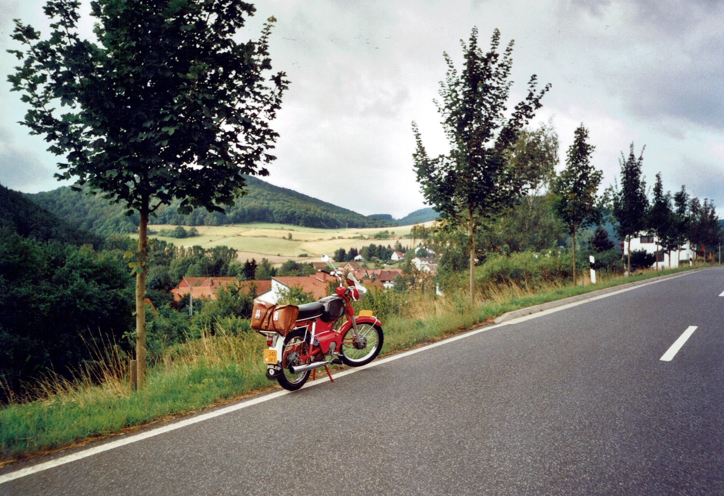 Uiteindelijk werd het een hotel. Het was nou niet bepaald goedkoop maar een belangrijk iets was dat mijn Kreidler in de garage van de eigenaar kon overnachten dat was ook wat waard. Eerst belde ik even met thuis dat ik goed was overgekomen. (Het verhaal van de Autobahn heb ik maar even voor me gehouden.) Na me een beetje te hebben opgeknapt ben ik gaan toeren door de omgeving en kwamen de herinneringen van vroeger weer boven, een prachtig gevoel.