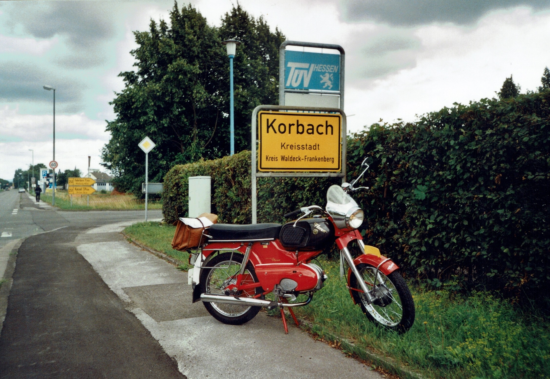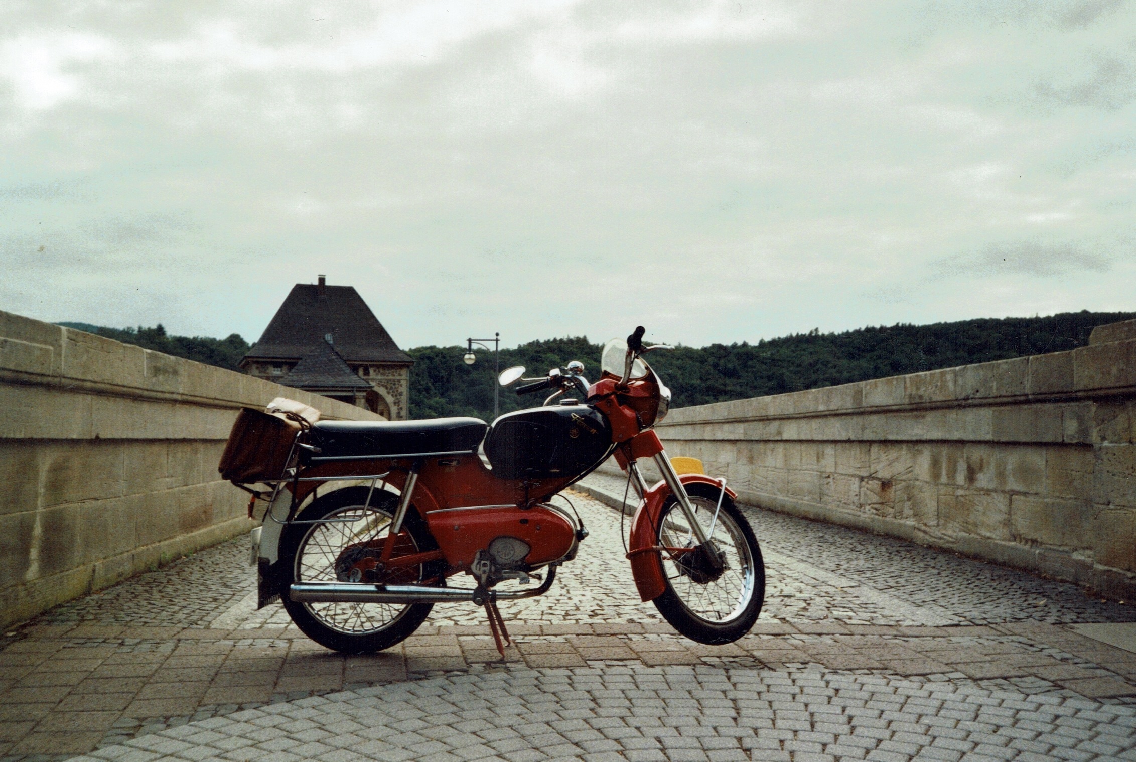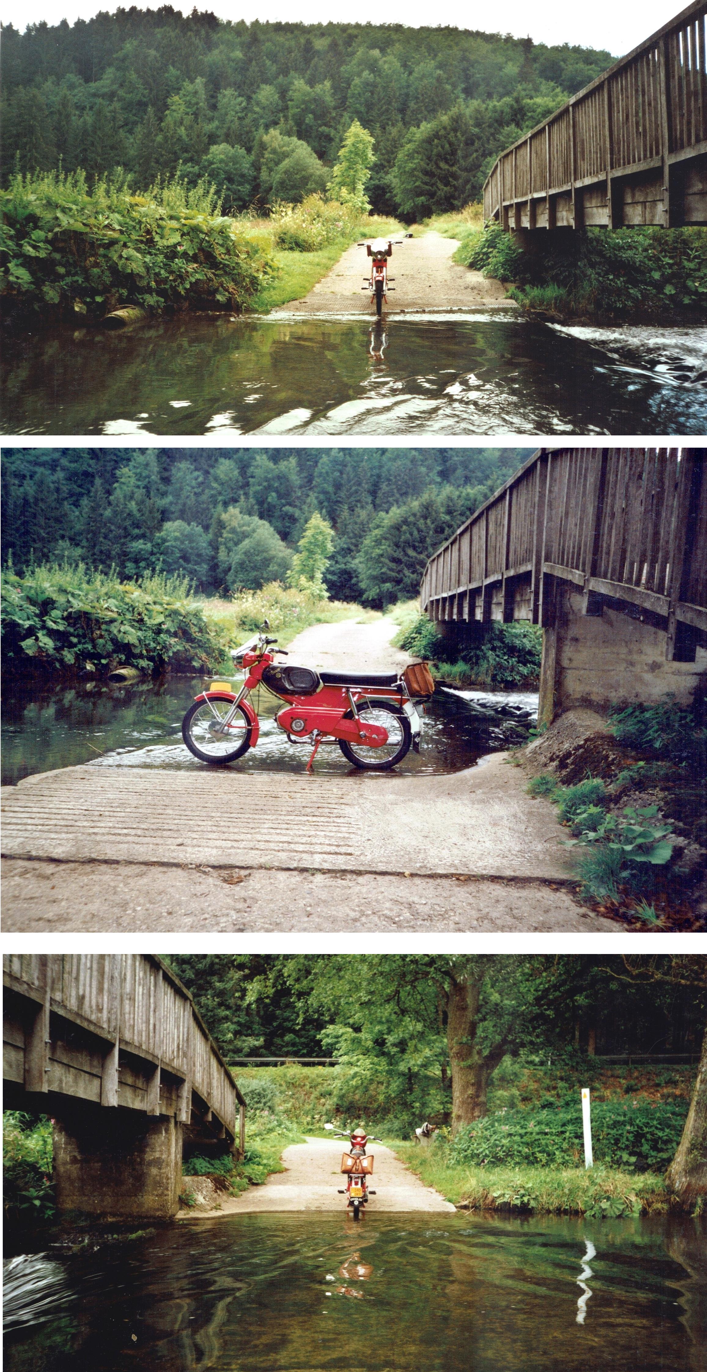 Uiteindelijk werd het een hotel. Het was nou niet bepaald goedkoop maar een belangrijk iets was dat mijn Kreidler in de garage van de eigenaar kon overnachten dat was ook wat waard. Eerst belde ik even met thuis dat ik goed was overgekomen. (Het verhaal van de Autobahn heb ik maar even voor me gehouden.) Na me een beetje te hebben opgeknapt ben ik gaan toeren door de omgeving en kwamen de herinneringen van vroeger weer boven, een prachtig gevoel.