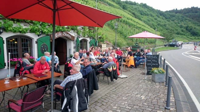 een heleboel goed. Na een paar uur getoerd te hebben streken we neer op een terras aan de Moezel in Beilstein.