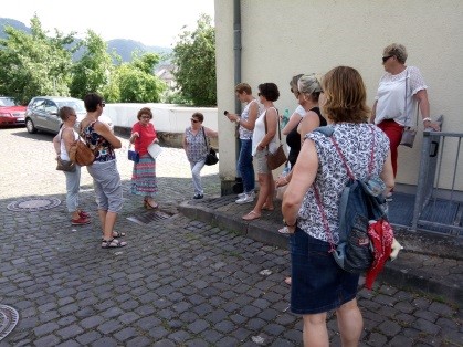 De dames worden door Thea de waardin, rondgeleid door Ortsteil Karden