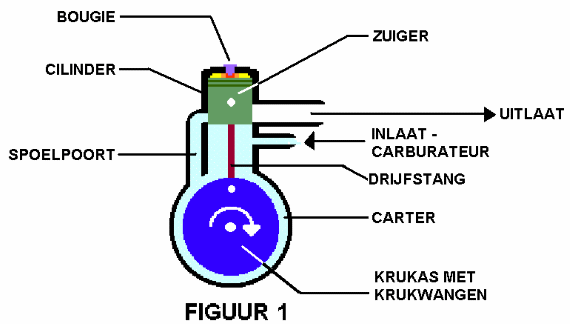 Het mengsel dat zich onder de zuiger bevind in het carter wordt gecomprimeerd omdat het carter een afgesloten geheel is Hoe het mengsel hier terecht is gekomen komt volgt in figuur 7