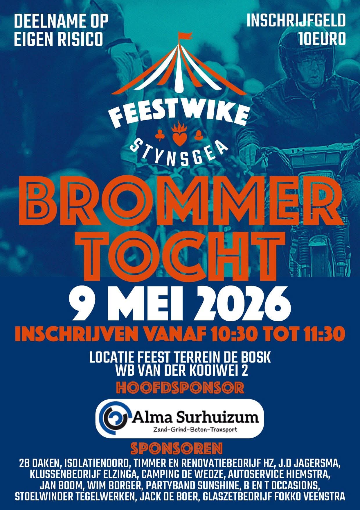 Inschrijven v.a. half 10. Tourrit voor de brommers, vertrek 11:45 uur. Info: Thomas Beumer: 06-2224 4327