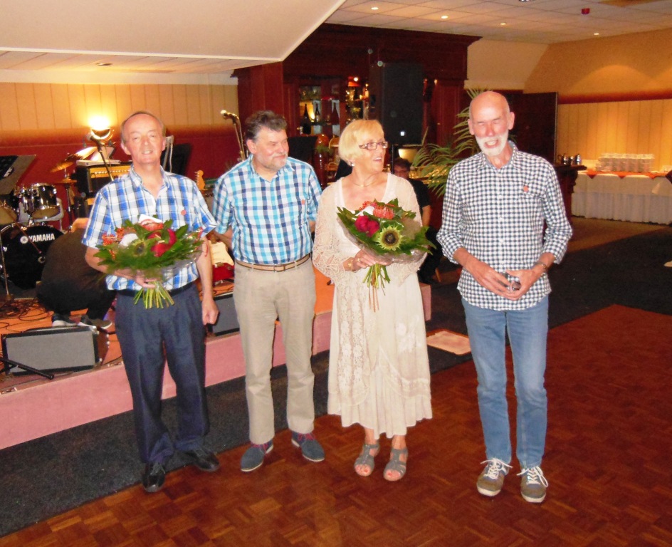 Op 23 augustus 2015 was het precies 25 jaar geleden dat onze club officieel werd opgericht Ter gelegenheid van dit heugelijk feit is er door een door het bestuur aangestelde feestcommissie e.e.a. georganiseerd. Als eerste is er door de commissie veel georganiseerd tijdens het bromfietstreffen op 5 juli. Op de exacte oprichtings datum was er een prachtige tourrit uit gezet. En als laatste evenement tijdens dit jubileumjaar was er op 29 augustus een feestavond bij de Olde Mölle te Neede. Jammer dat het volledige bestuur niet aanwezig kon zijn. Wat ook jammer was, was de magere opkomst van de leden. In z’n totaliteit waren er ca 80 mensen inclusief partners en enkele sponsoren. Dat viel erg tegen. Van de aanwezige leden waren er ca 35 met partner. Dus in totaal hadden zich 80-35 = ca45 leden opgegeven. Op een ledenaantal van 315 is dit (om niet te zeggen bar) erg weinig. Toch waren er ook mensen die van ver gekomen waren ondermeer uit Arnhem , Noord Holland, Joure en uit Veenhuizen in Drenthe. De gezelligheid was er echter niet minder om. De muziek speelde nummers uit de 60 en 70er jaren,schitterend. Al hoorde ik zo hier en daar er zit geen Beatles of Rolling Stones bij. Persoonlijk had ik enkele Nederlandstalige nummers uit die tijd ook wel mooi gevonden. Dit blijf je houden, smaken verschillen nou eenmaal. Wat mijns inziens bij iedereen in de smaak viel was de demonstratie van de Rock and Roll groep. Het was een wervelende show. De avond werd op een uitstekende manier aan elkaar gepraat door ceremoniemeester Ben Dorenbusch. Hij had ook de taak om de aanwezige bestuursleden van het eerste uur en die nog lid zijn van onze club in het zonnetje te zetten en een speldje op te spelden met de tekst Kreidler Club Oost Nederland 25 Jaar Lid. Dit waren de heren Bok , Beumer en Libbers. Ook een speldje kregen de heren Wilderink , Hekman en Leferink. Deze waren ,,gewoon,,25 jaar lid. Er schenen echter nog enkele leden aanwezig te zijn die ook 25 jaar lid waren maar geen speldje hebben gekregen. Onze secretaris heeft toegezegd dit uit te zoeken.In de toekomst zullen leden die 25 jaar lid zijn met de nieuwjaarsreceptie worden gehuldigd. Ook de inwendige mens is niet vergeten er was een royaal hapjes/koud en warm buffet. Het smaakte voortreffelijk. Door dat er met het bromfietstreffen met de verloting niet alle prijzen eruit waren gegaan, werden op deze avond enveloppen uitgedeeld met hierin al dan niet een bonnetje voor een prijs. Ikzelf kon me gelukkig prijzen met een mini fietsbel. Aan alles komt een eind , dus ook aan deze feestavond. Om 24.00 uur was het afgelopen (precies zoals in de 60 en 70er jaren). Ik vond het een geslaagde avond!! Op naar de volgende 25 jaar………..alhoewel? Hoe oud hopen we dan te zijn ???